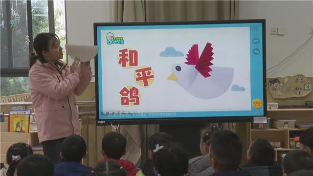 随后的“和平鸽寄心愿”手工课上,孩子们围坐在一起,跟着老师学折和平鸽。彩纸在稚嫩的小手中翻转,一只只形态可爱的纸鸽很快成型。孩子们捧着自己的作品,轻声道出心中的愿望。“我折这个和平鸽,是希望世界上没有战争,世界和平。”小朋友邓景棋的话语纯真而坚定。